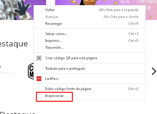 1. O primeiro passo é como se fosse alguma alteração para Desktop. Aperte o botão direito do mouse e selecione a opção "Inspecionar" (ou diretamente Ctrl+Shift+I)