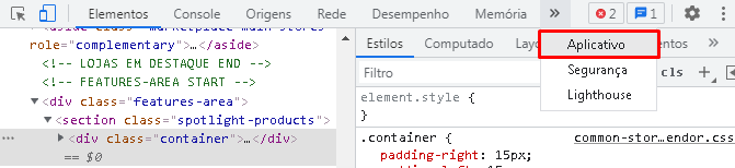 4. Agora no menu superior você deve achar a opção "Application" e selecioná-la: