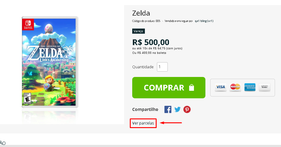 -Ativar as opções de parcela nas vitrines de produto: Permite que o usuário final consiga visualizar as opções de parcelas antes de avançar para o carrinho: