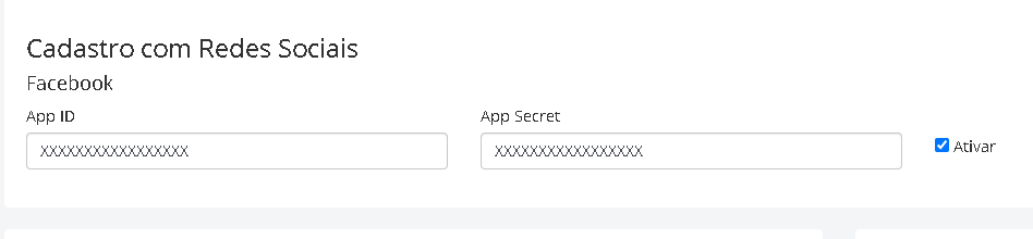 OBS: O Login do Facebook só permite a utilização se o marketplace já estiver com o certificado SSL (https) ativo, por questões de segurança: