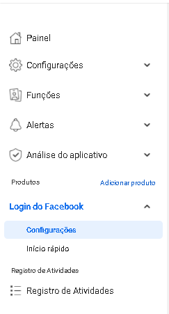 7. Cliquem em "Configurações" do Login do Facebook, no menu lateral esquerdo: