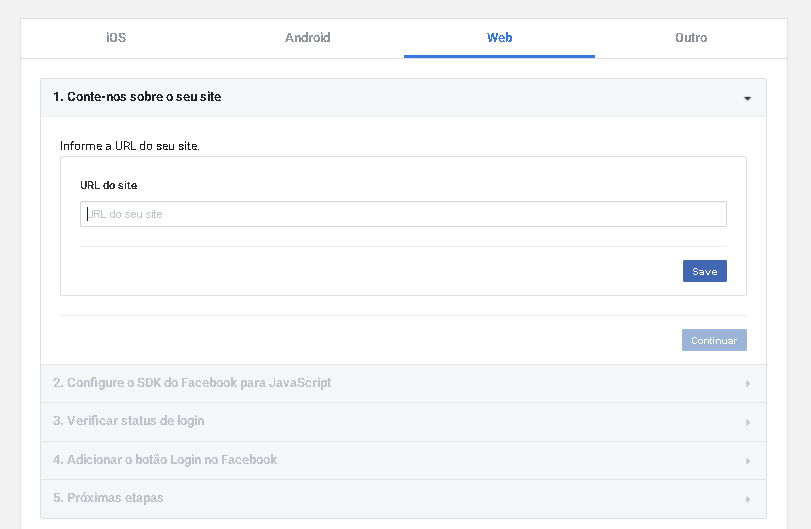 Informe a URL do seu site, salve e clique em continuar: