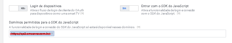Ative a opção de entrar com o SDK do JavaScript e preencha com o domínio do site
