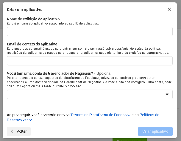 E clique em "Criar aplicativo";