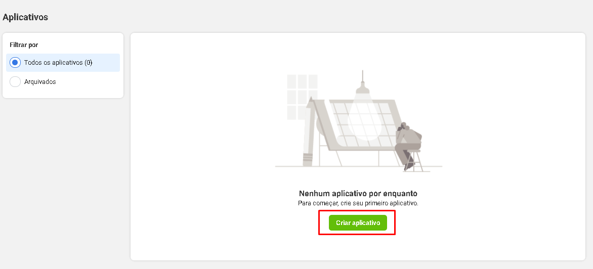 3. Após entrar com suas informações você deverá Criar um aplicativo ou clicando em "Meus aplicativos":