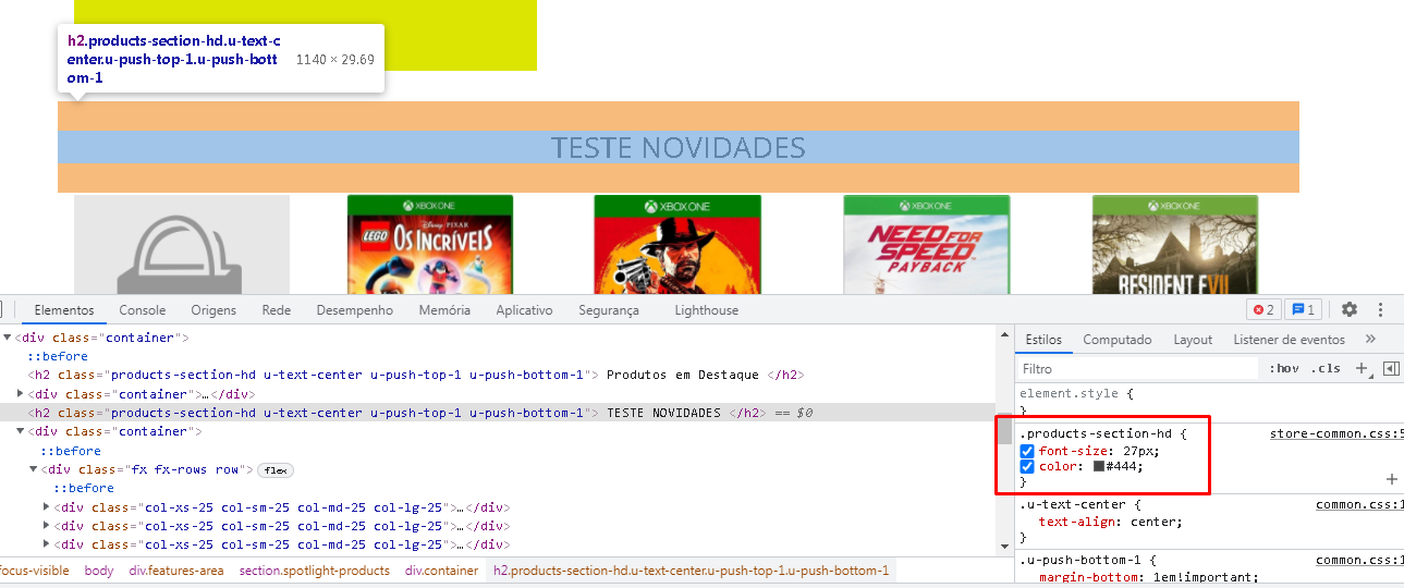 Encontramos o elemento que é .products-section-hd, como mostra na figura abaixo:
