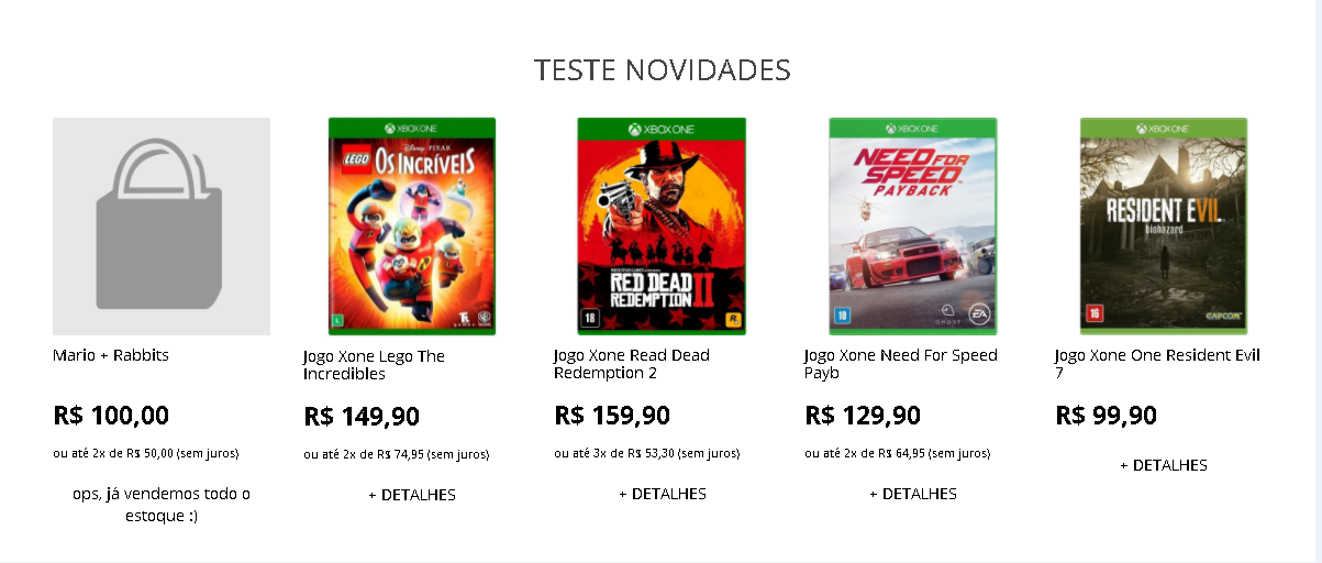 Nesse exemplo vamos ocultar o título da vitrine (TESTE NOVIDADES)